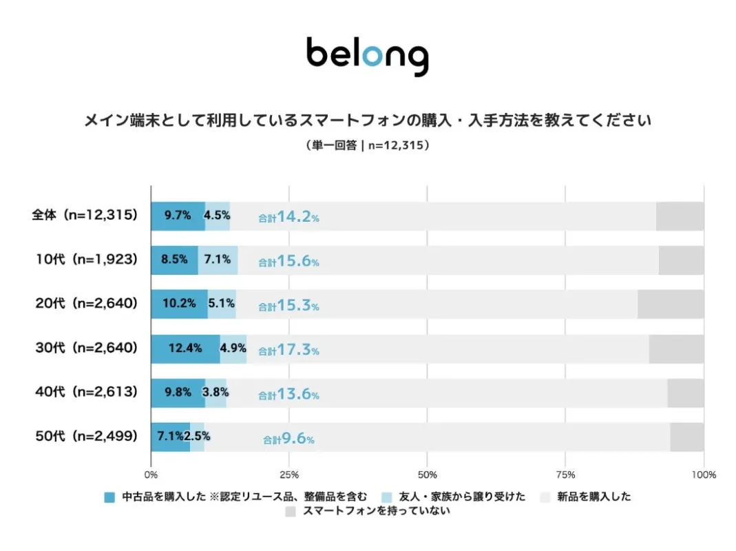 株式会社Belongが10代から50代の男女を対象に実施した「中古スマートフォン利用実態調査」の結果から、そのリアルな状況が見えてきました。