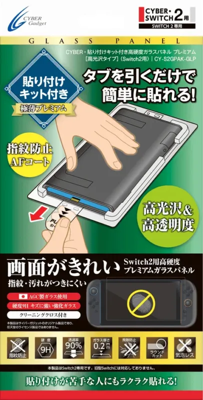 • CYBER・貼り付けキット付き高硬度ガラスパネル[高光沢タイプ](Switch2用)プレミアム