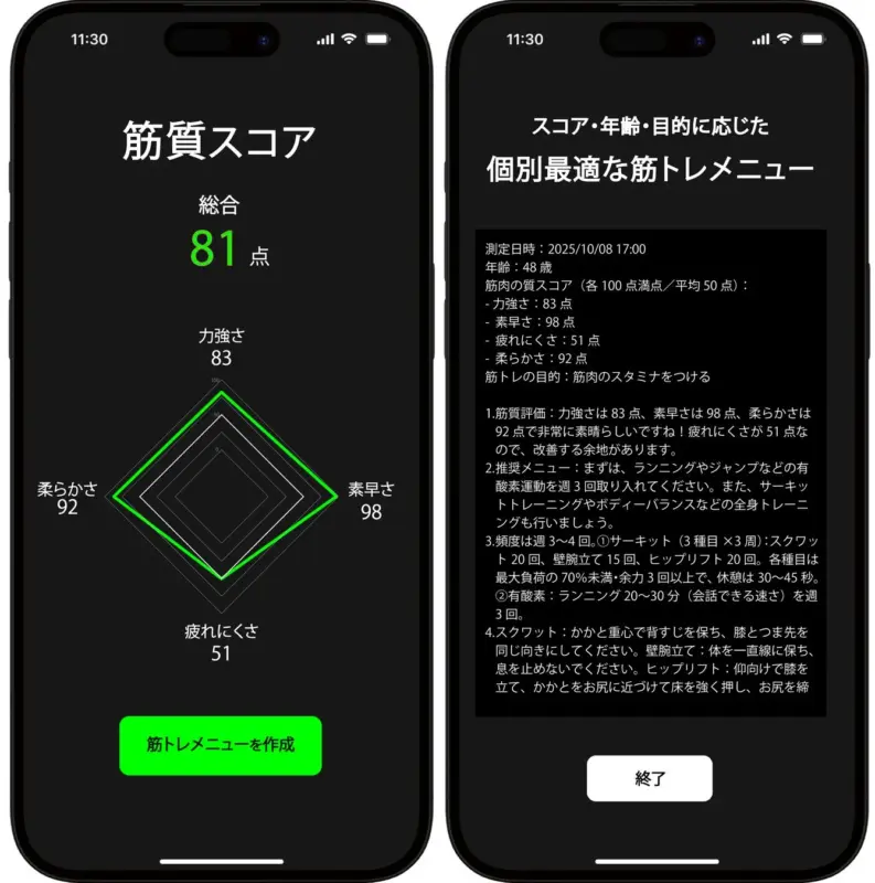 - 見る: アプリで筋質スコアを確認!