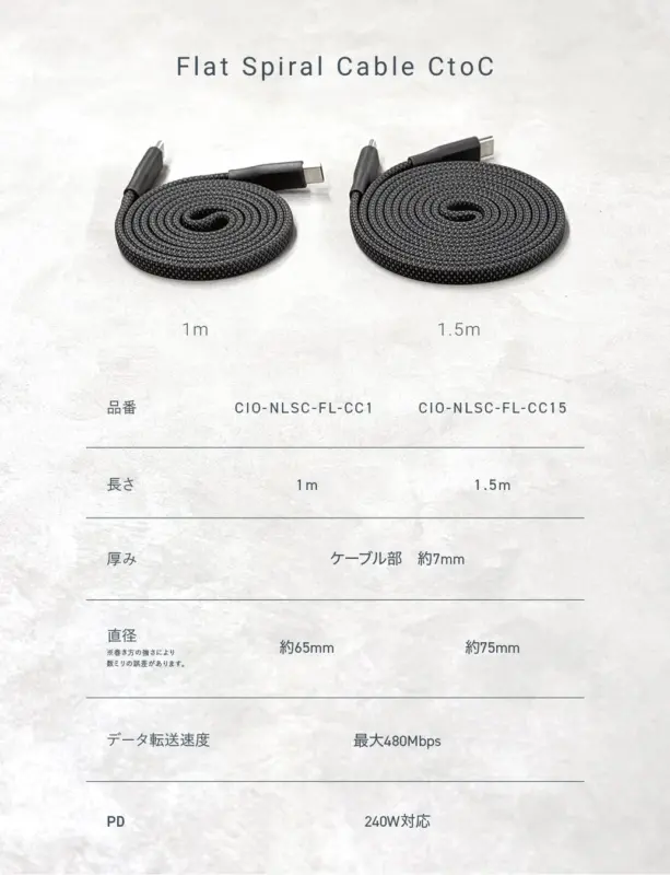 クルッとまとまる「CIO Mate Flat Spiral Cable CtoC 1.5m」
