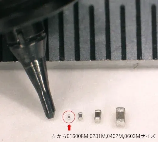 そこで注目されているのが、次世代規格である016008M部品です。この部品は、0201Mサイズと比較して実装面積が約半分になるため、より高密度な回路設計が可能になります。これにより、電子機器の性能向上や小型化に大きく貢献することが期待されています。